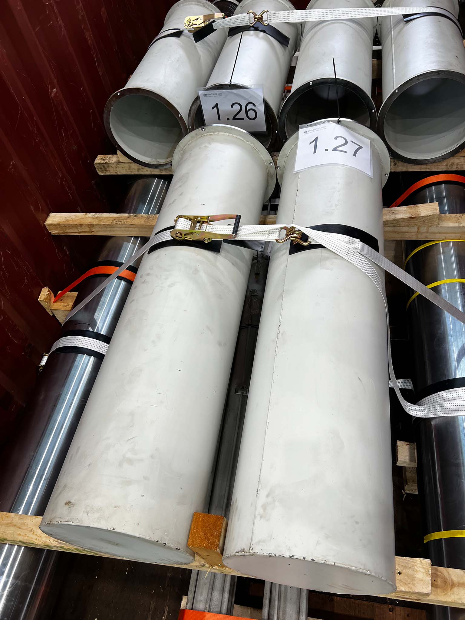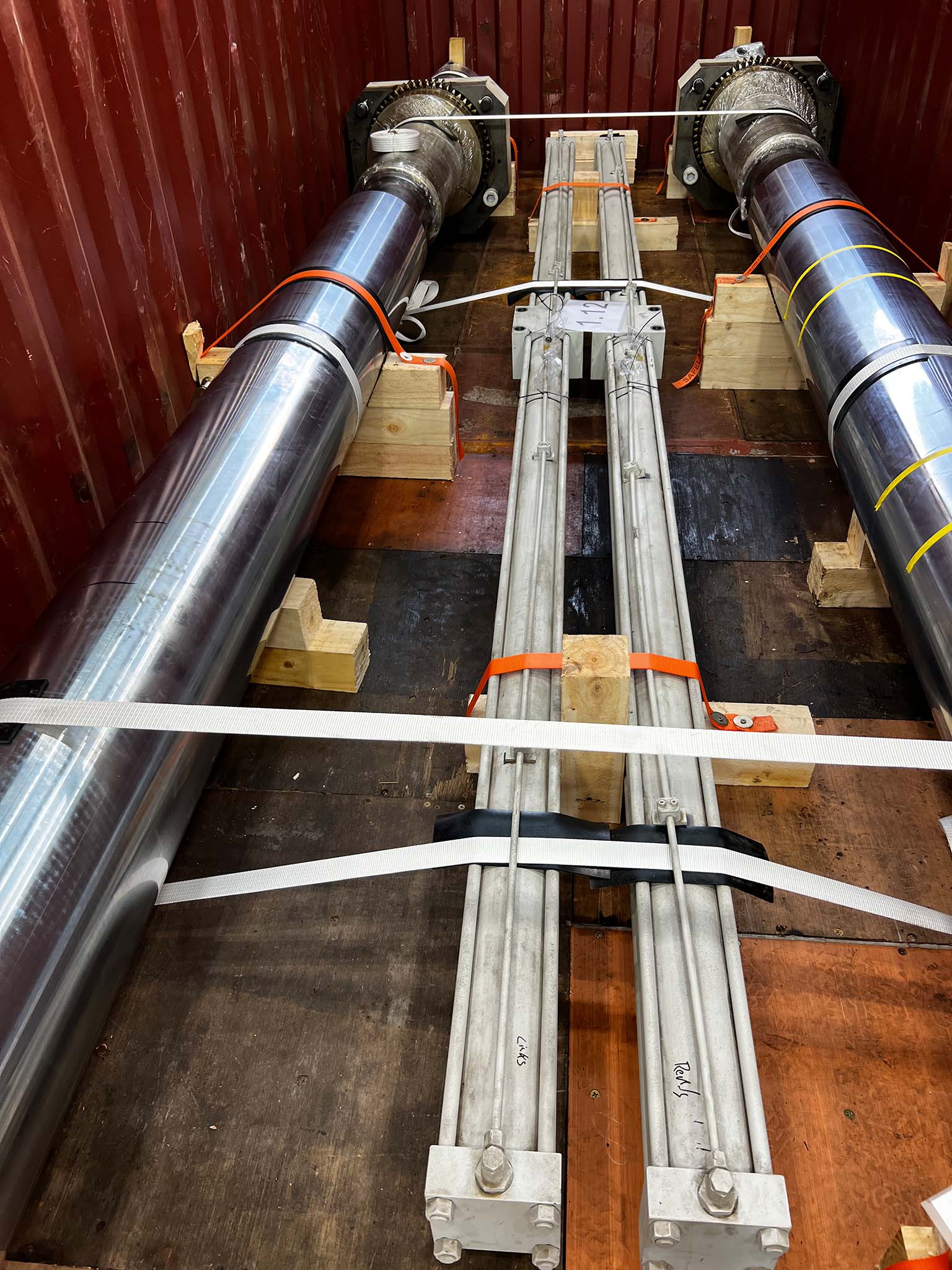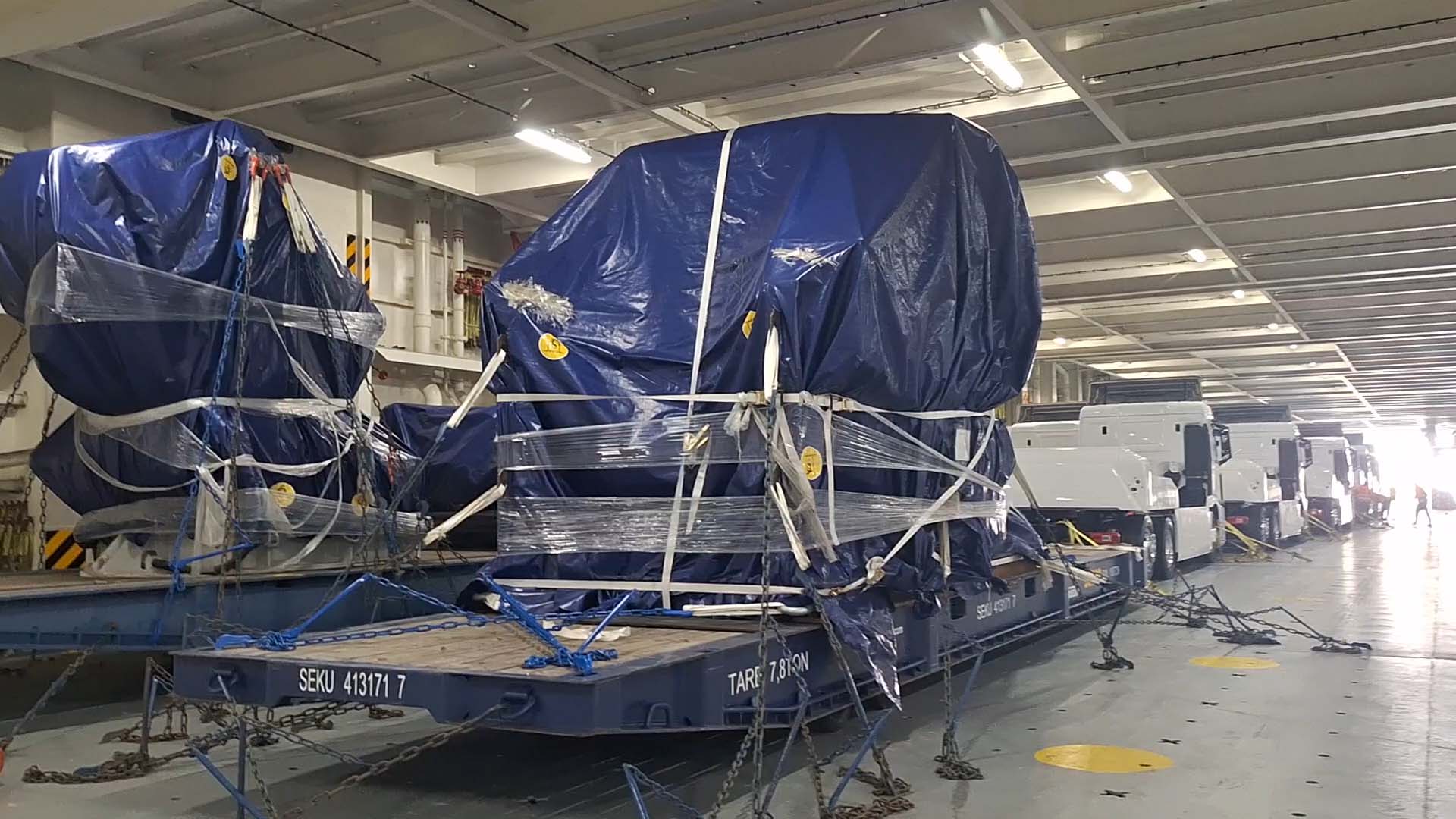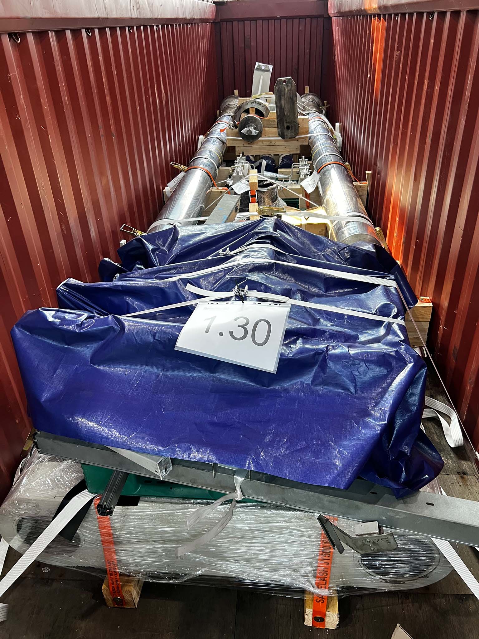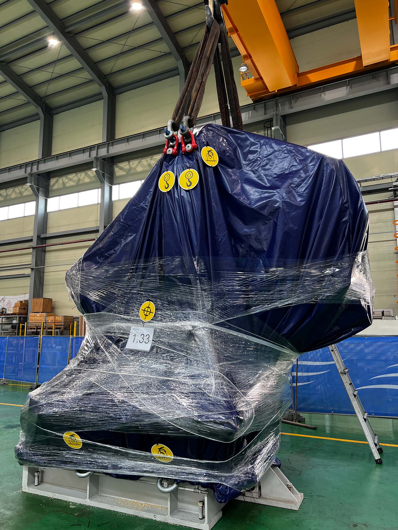 Dopo lo smontaggio, le singole parti della macchina sono state caricate in container speciali e su autocarri per carichi pesanti. Per garantire un trasporto sicuro, i componenti sono stati preparati e fissati in modo adeguato, in modo da soddisfare gli elevati requisiti del trasporto di carichi pesanti.
