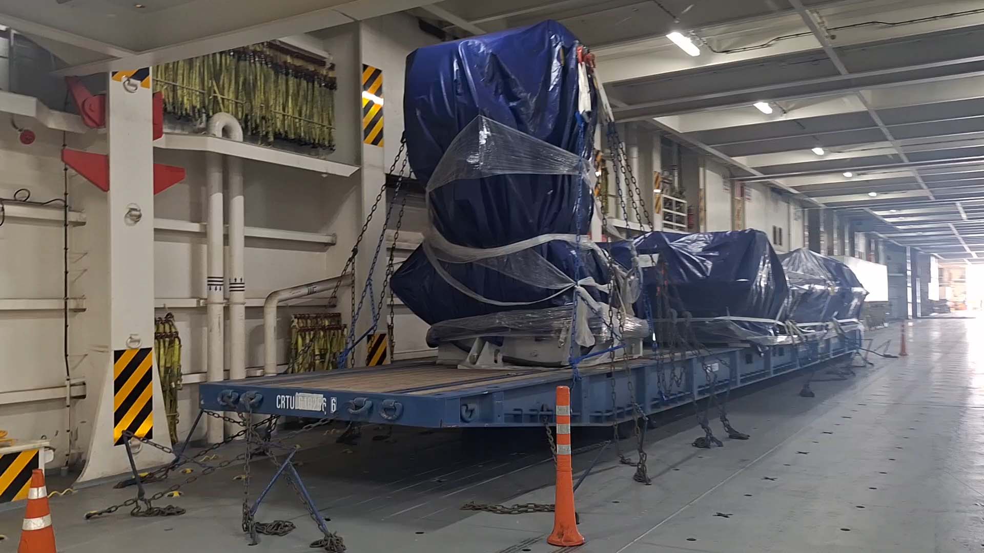 Il trasporto della macchina è avvenuto via mare verso Bremerhaven e il porto di Amburgo, due importanti hub logistici in Germania. Il carico nei container e sui mezzi di trasporto pesanti è stato organizzato in modo professionale per garantire un trasferimento senza intoppi.