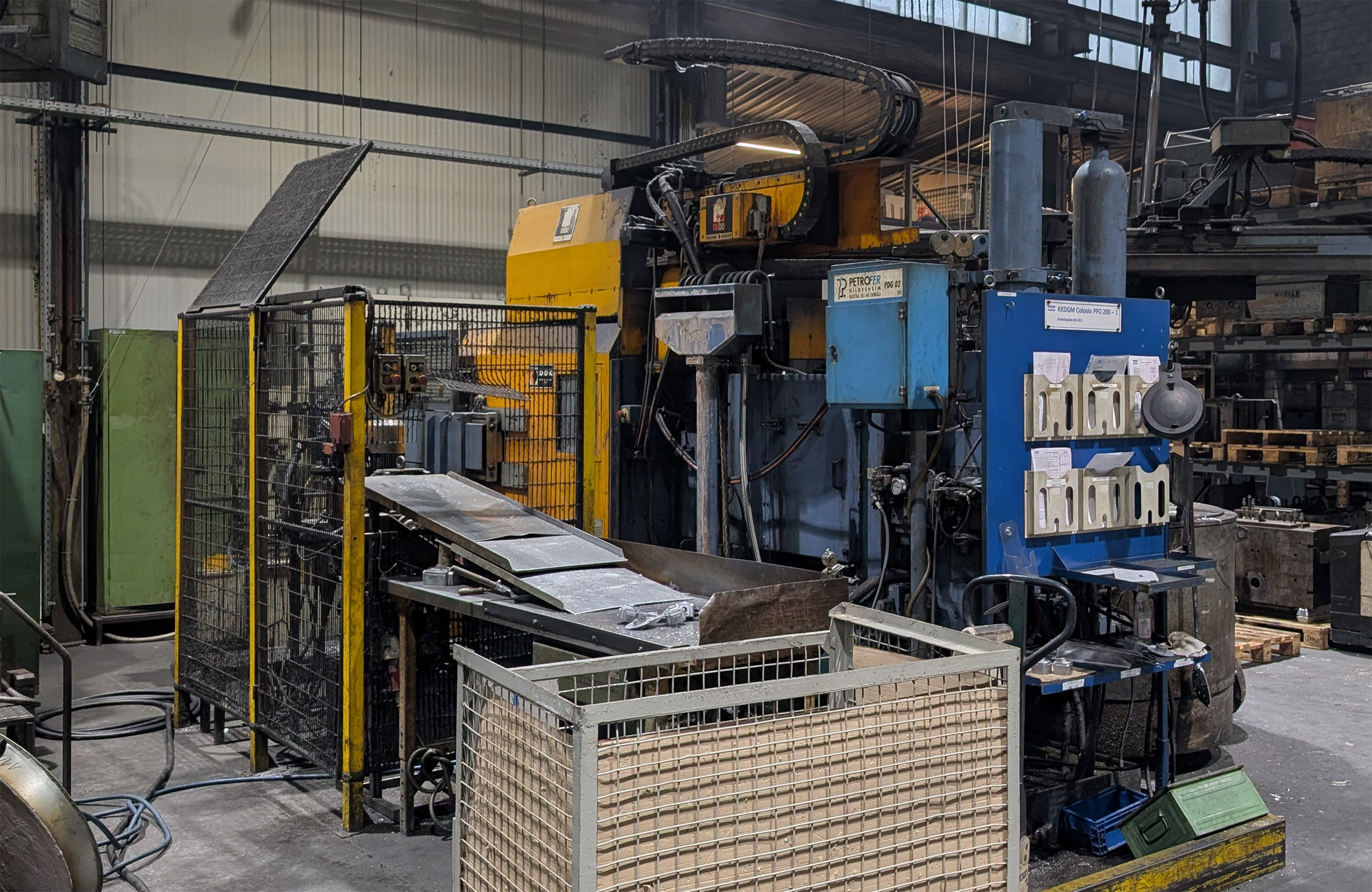 All'altra estremità del ventaglio dei prodotti Colosio c'è il modello PFO 2200. La pressione di chiusura di questa macchina è di 21.730 kN Le dimensioni delle forme supportate vanno da 550 a 1.660 mm, mentre le dimensioni della piastra di chiusura sono di 2.250 × 2.250 mm. La forza di chiusura di 1.600 kN è sufficiente per riempire rapidamente anche le forme più grandi.